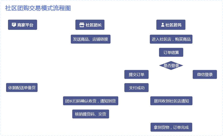 以社區為單位,由寶媽或店主成為團長,在線上借助微信群、小程序等組織社區居民拼團、線下完成交付,當日線上下單、次日社區內自提,由平臺提供采購、物流倉儲及售后支持。按銷售額,團長抽取一定比例傭金。